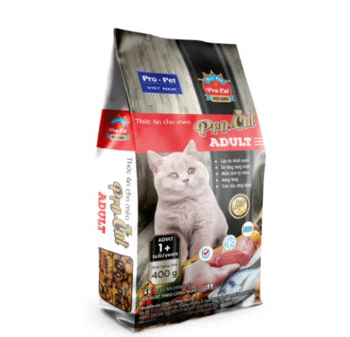 Pro-Cat Adult Cat Food is specially formulated for cats of all ages, particularly adult cats, to improve skin and coat health and support digestion. Made with high-quality, nutritious, and easily digestible ingredients, it delivers a delicious taste while enhancing the immune system, stimulating biological functions, maximizing nutrient absorption, supporting gut health, and minimizing waste output.